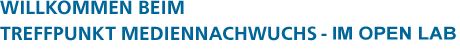 Erstmalig bietet der Treffpunkt Mediennachwuchs mit dem Open Lab eine Plattform für die regionale Kreativ- und Kulturwirtschaft. Das Open Lab bricht die tradierten Veranstaltungsformate auf und schafft eine Experimentierplattform. In diesem offenen Labor werden mutige Ideen und kreative Unternehmen vorgestellt, StreitgespräL;che geführt und Neue Medien diskutiert. Neuen Impulsen soll hier nachgespürt werden und das Publikum ist angehalten das Open Lab mitzugestalten. Das Open Lab ist ein kleiner Raum für große Geschichten.